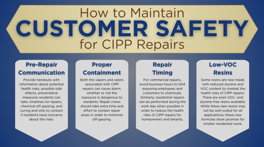CIPP repairs are fast, less invasive, and safe when completed properly. But when your customers have concerns about chemical exposure, being prepared to meet those questions and concerns head-on will give your customers more confidence that they’ll be safe throughout the repair process.